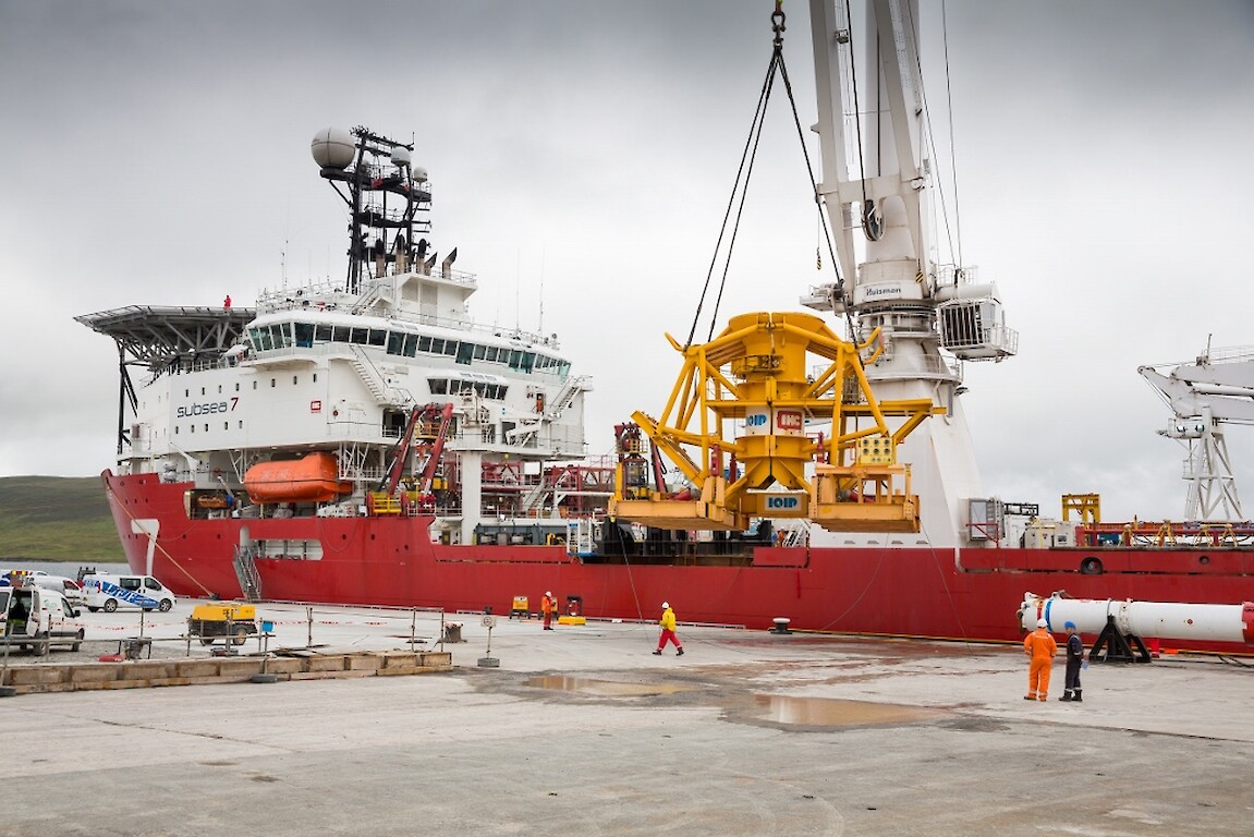 Completion of the first phases of an £11.95 million quay extension at Lerwick Harbour’s deep-water Dales Voe Base has facilitated mobilisation of a large offshore construction vessel ahead of a contract offshore Canada.
