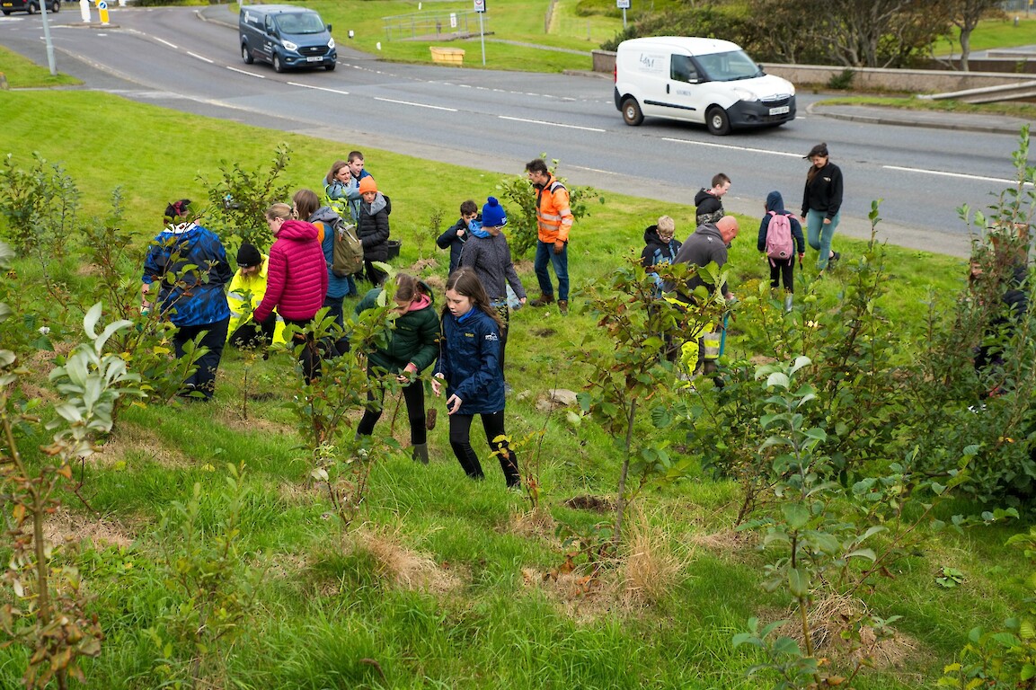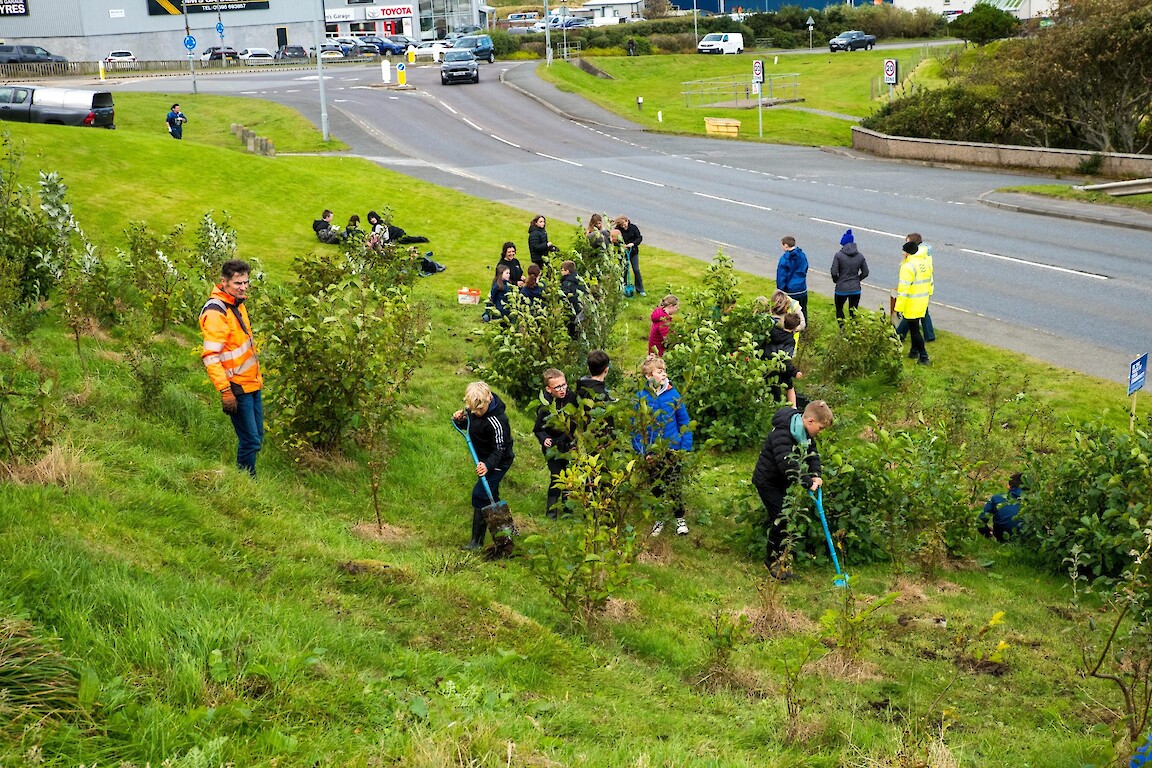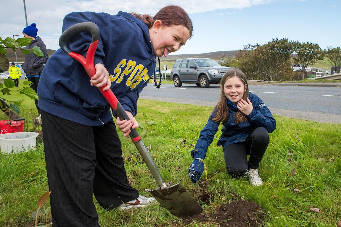 A group of 38 Primary 7 pupils from Sound Primary School, Lerwick, rolled up their sleeves to assist Lerwick Port Authority with its ongoing tree planting and rewilding efforts.