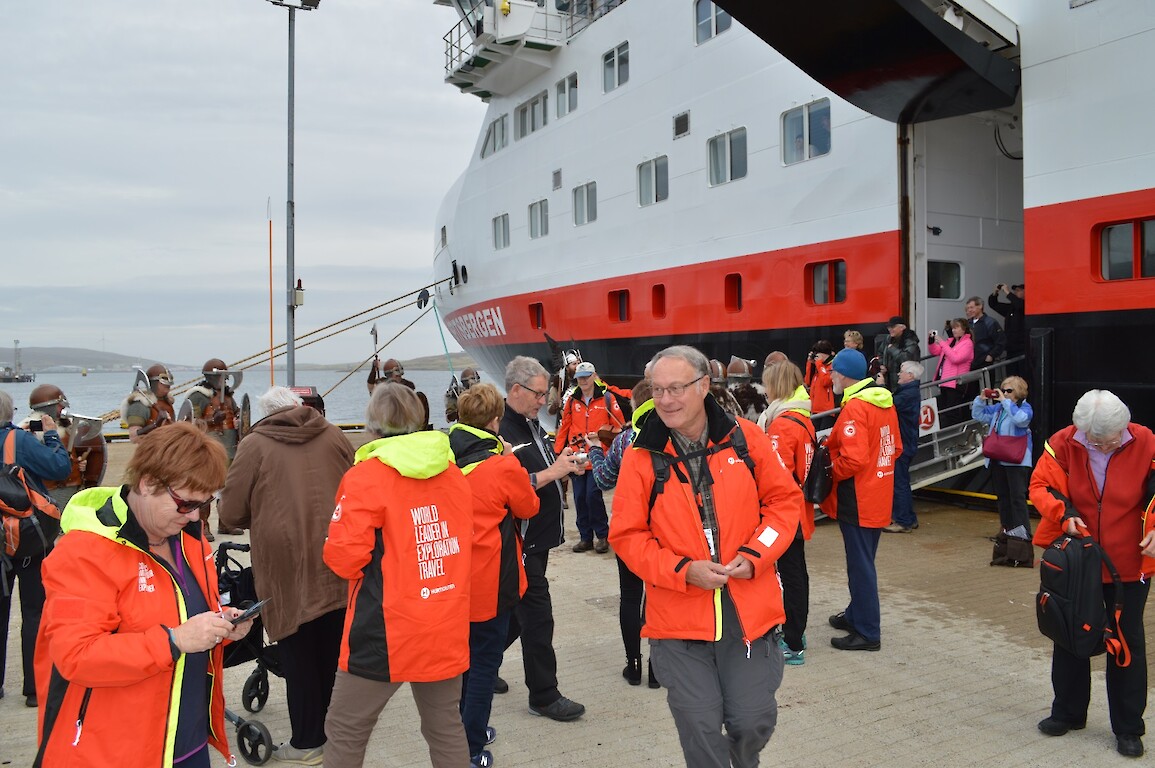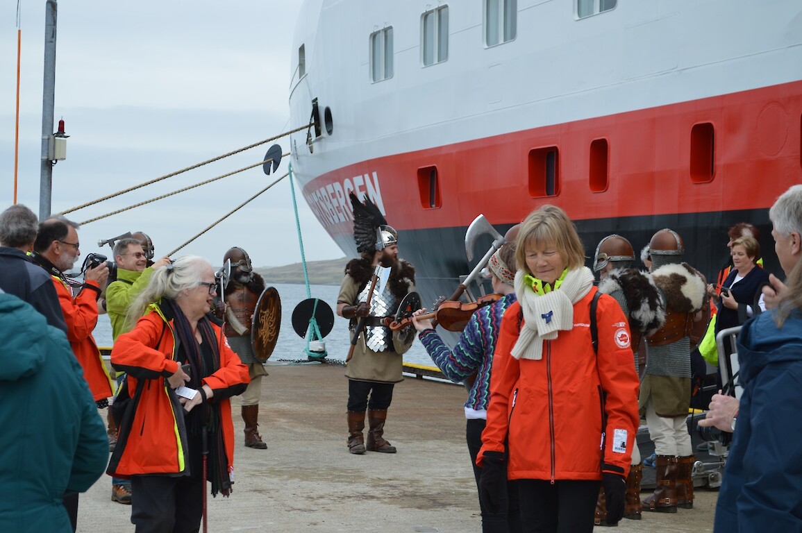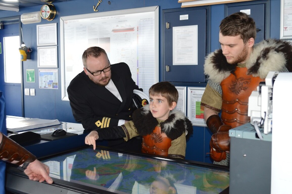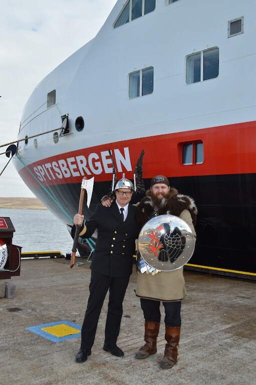 The 2017 Jarl Squad were in fine voice this morning, giving passengers and crew of the maiden call of Spitsbergen a warm welcome . With special thanks to the Captain and crew for their kind hospitality welcoming the vikings onboard to tour the ship and visit the bridge.