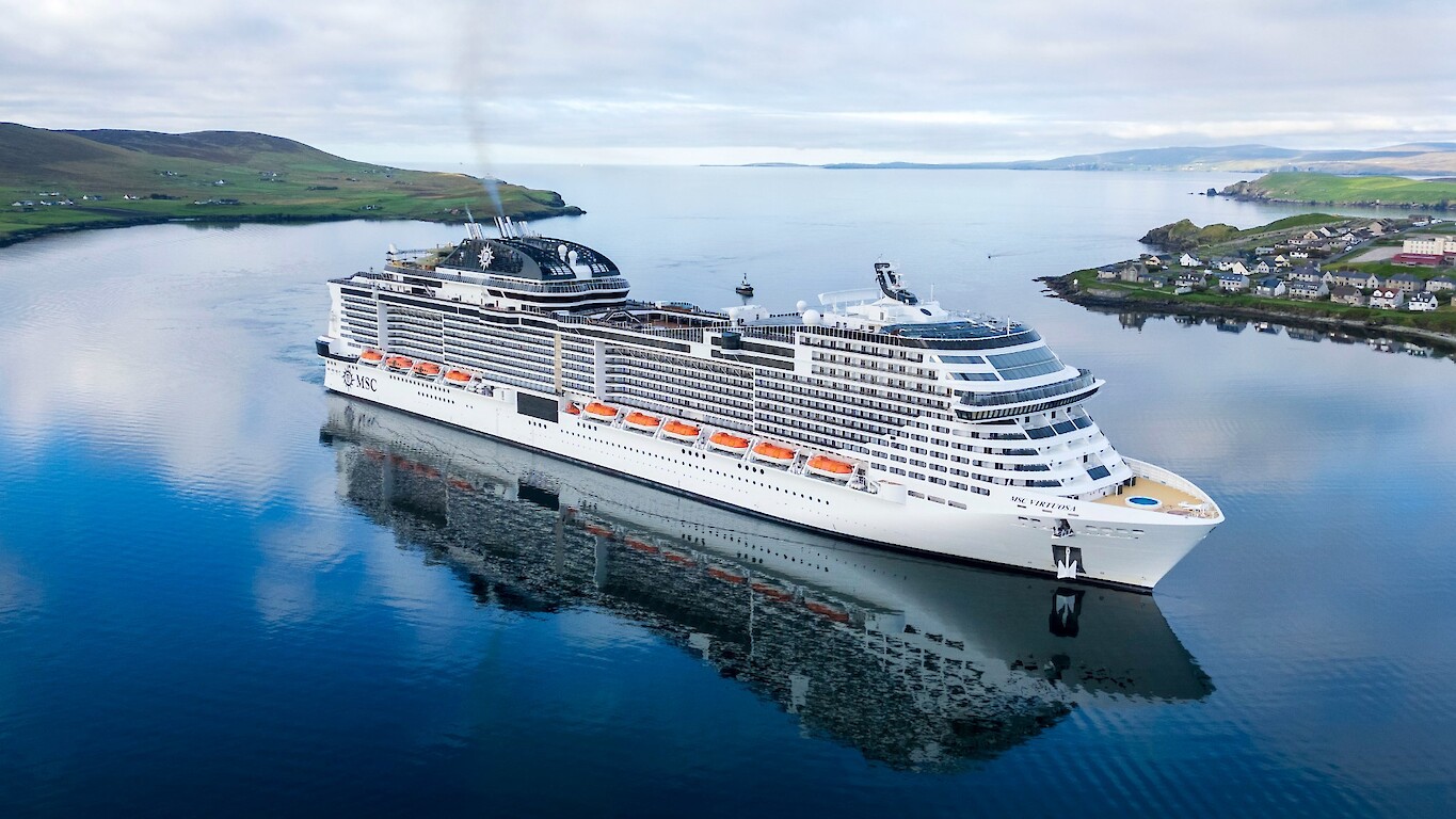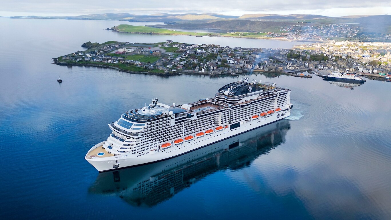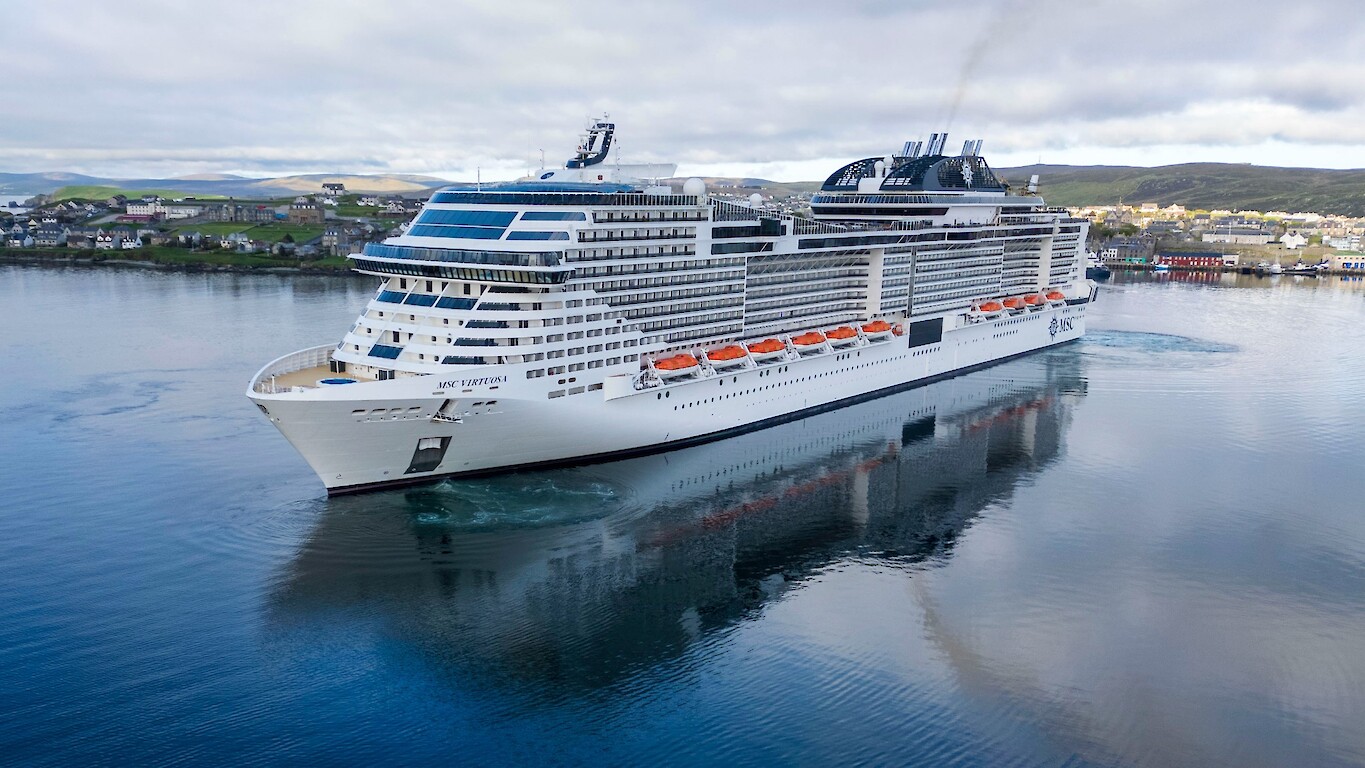 The largest previous cruise vessel to call at Lerwick was Virtuosa's sister ship, MSC Meraviglia (171,598 gross tonnes) in July 2018.